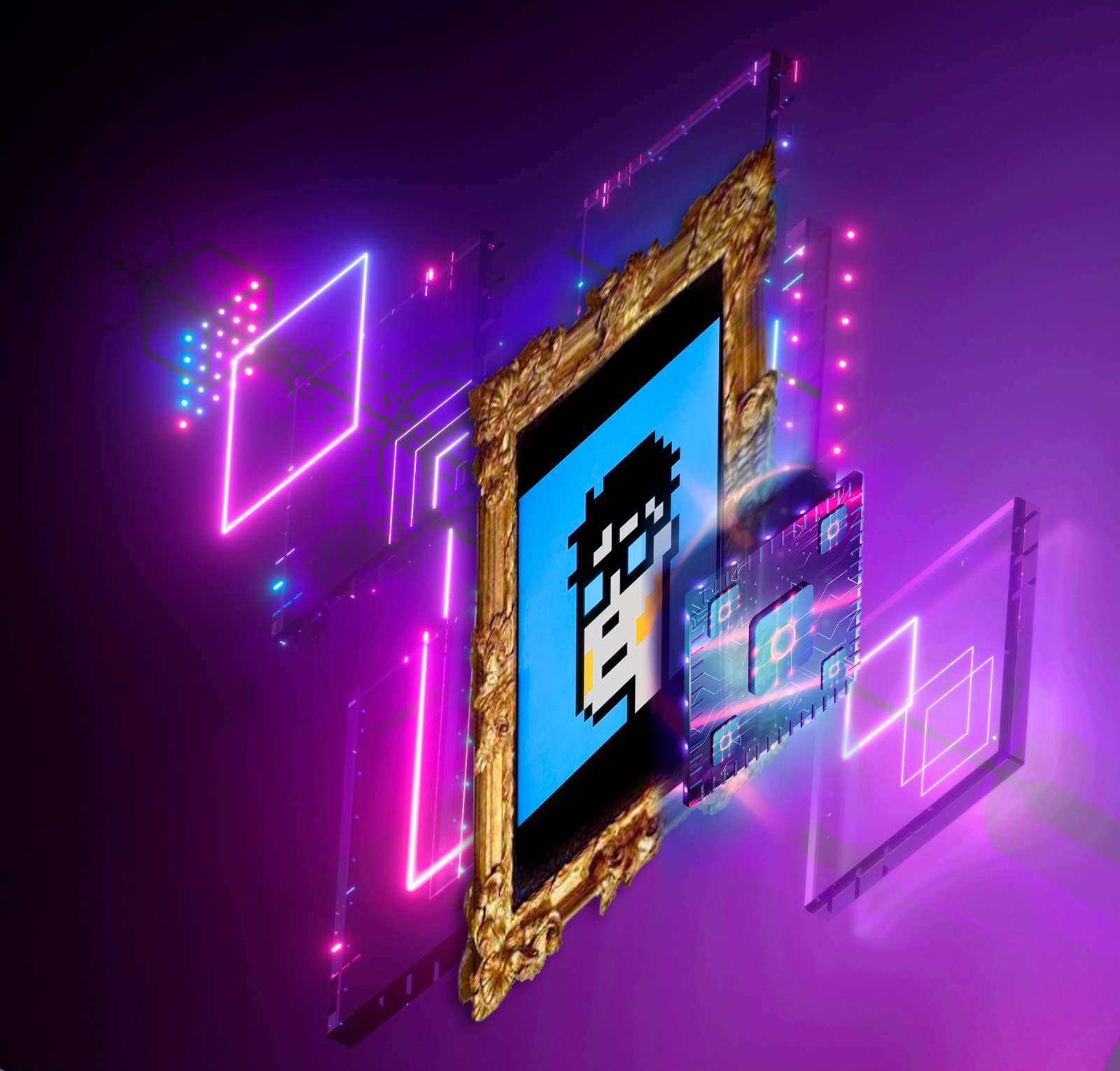 Introducing Non-Fungible Canvas - our patented solution that prints your digital NFT on a high-quality canvas embedded with a chip to record its provenance on the blockchain, allowing you to own a certified piece of fine art with added authenticity.